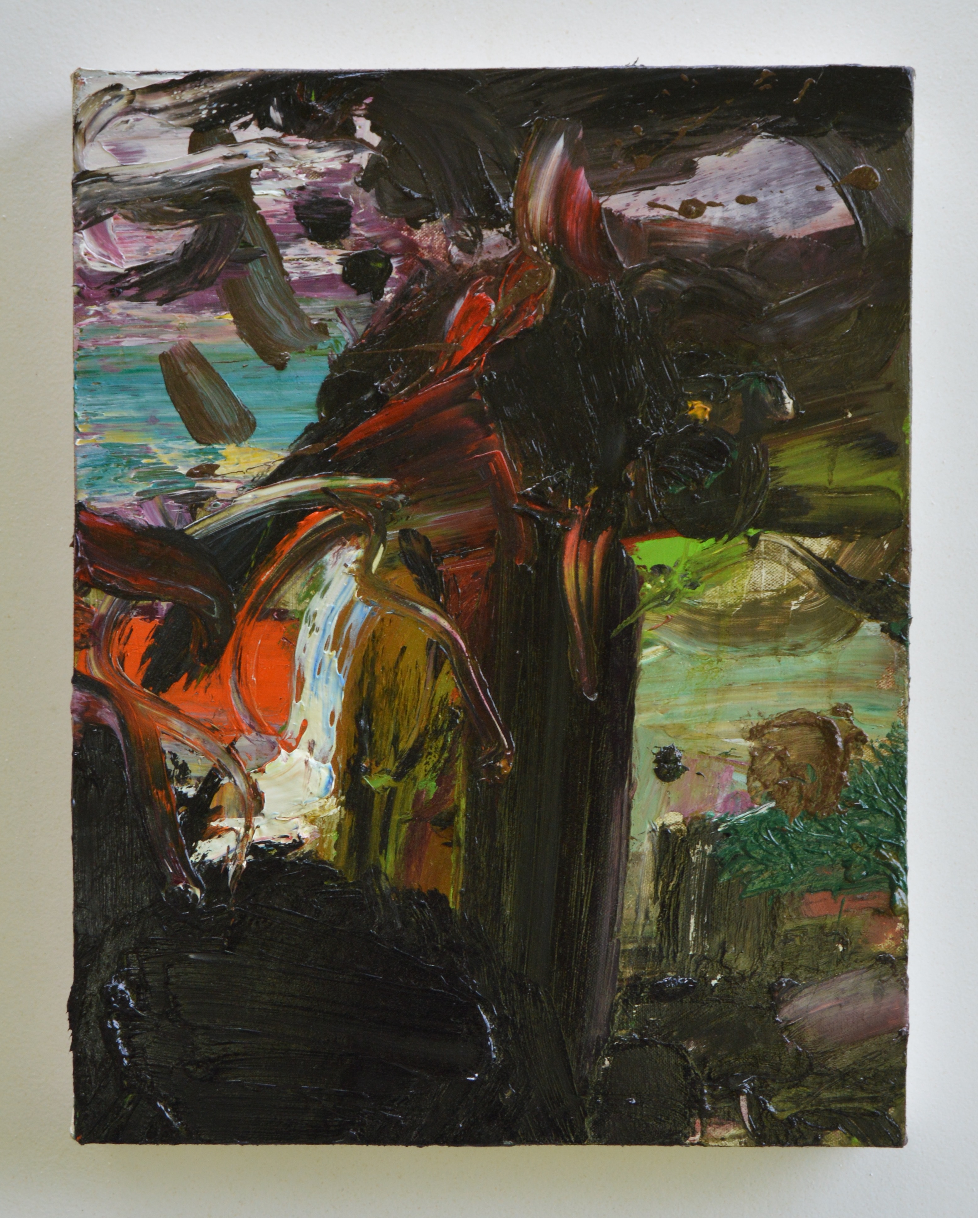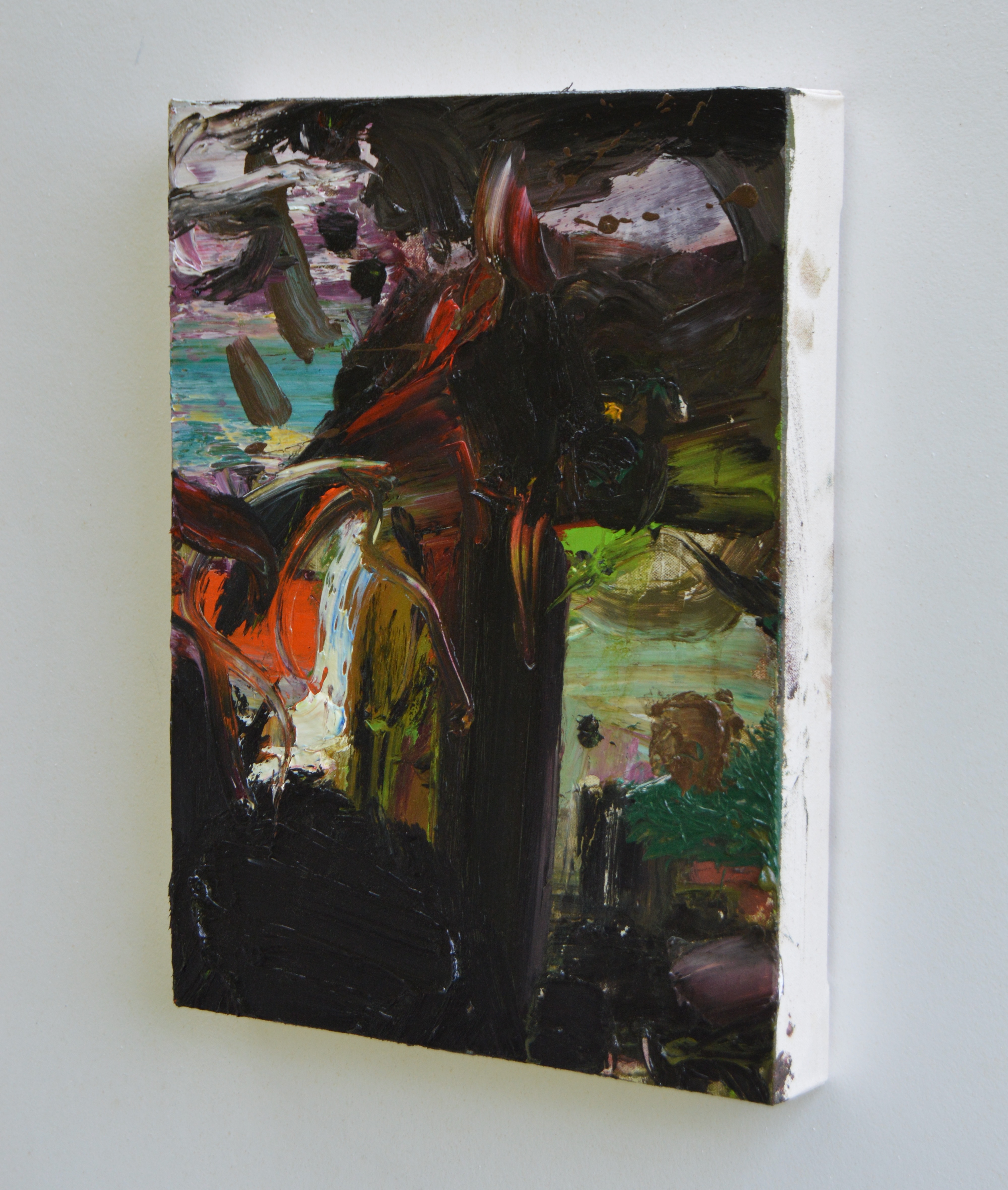oil, enamel, and epoxy resin on canvas mounted on board12 1/2 x 22 1/8 in.